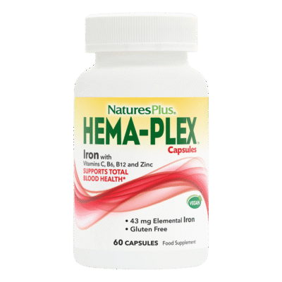 NaturesPlus HEMA-PLEX is designed to provide comprehensive nutritional support for healthy blood. It combines iron with a broad range of complementary nutrients involved in red blood cell formation, haemoglobin production and the transport of oxygen around the body. The formula also includes antioxidant support to help protect cells from oxidative stress. By supporting healthy blood levels, it can also play a role in maintaining normal energy and mental performance.